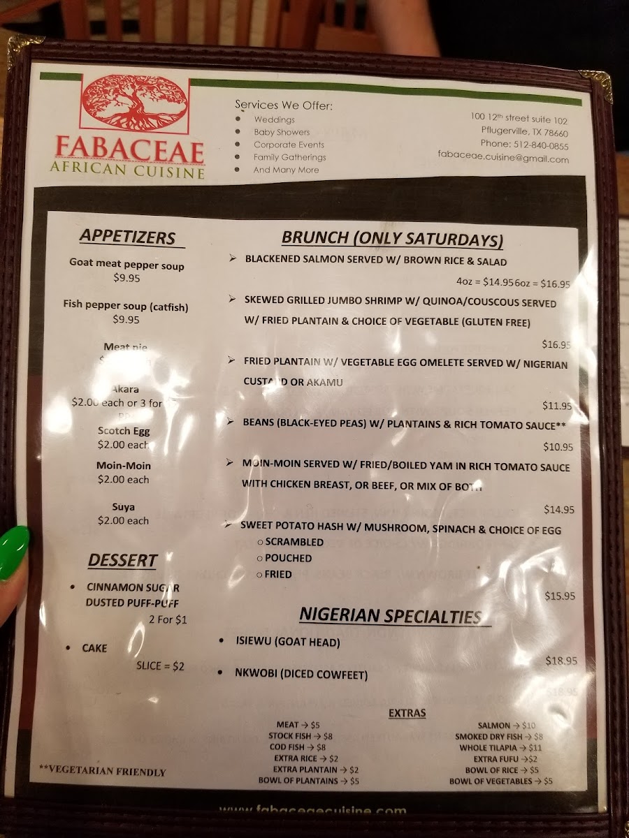 Fabaceae African Cuisine Inc. Menu